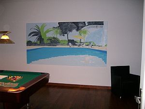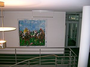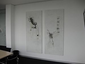 Andererseits zeigen seine jüngsten Bilder auch ruhigere Motive, etwa Landschaften mit einsamen Skifahrern oder Bergsteigern oder sogar gestisch abstrakte Kompositionen, von zarter, lockerer bis hin zu intensiver, dichter Farbigkeit.