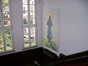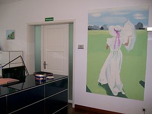 Manchmal haben ihre Bilder etwas Zeichenhaftes, wenn sie ihre Farbigkeit auf hell-dunkel Tonalitäten reduziert. Dann läßt sie Schattenfiguren vor Wänden zu eigenwilligen Wesen werden oder Wälder und Figuren mit weichen Pinselstrichen wie Kreidezeichnungen erscheinen. Immer geht es ihr jedoch um inhaltliche Verdichtung von vielfältigen Eindrücken und um Ausdrucksintensität, die sie mit beeindruckender Sicherheit für Formen und Farben auf die Leinwand bringt.