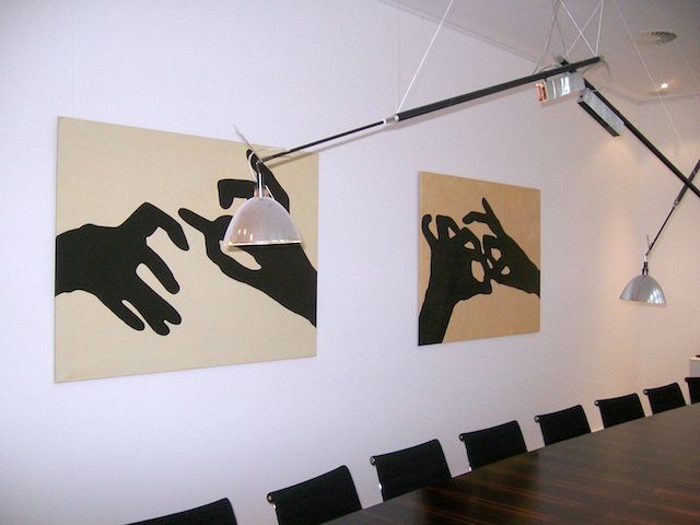 Andererseits zeigen seine jüngsten Bilder auch ruhigere Motive, etwa Landschaften mit einsamen Skifahrern oder Bergsteigern oder sogar gestisch abstrakte Kompositionen, von zarter, lockerer bis hin zu intensiver, dichter Farbigkeit.