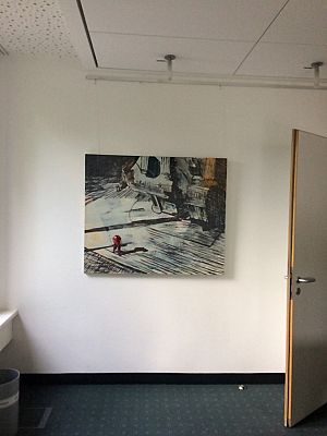 Seine Bilder zeigen fast beiläufige Szenen, Momente und Situationen, Ausschnitte aus dem Alltag – oder sie zeigen Fiktionen, also Phantasien, die wie Alltag aussehen. So irritiert Jub Mönster mit seiner Malerei und spielt meisterhaft mit unserer Wahrnehmung: Er vermischt Abstraktes und Gegenständliches, Räumlichkeit und Fläche, Fremdes und Eigenes, Realität und Fiktion auf eine malerisch anspruchsvolle und poetische Art und Weise.