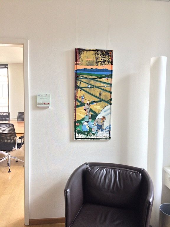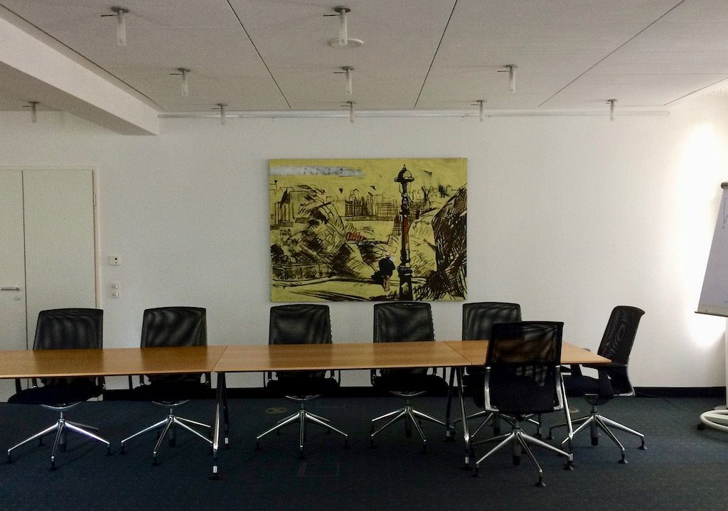 Seine Bilder zeigen fast beiläufige Szenen, Momente und Situationen, Ausschnitte aus dem Alltag – oder sie zeigen Fiktionen, also Phantasien, die wie Alltag aussehen. So irritiert Jub Mönster mit seiner Malerei und spielt meisterhaft mit unserer Wahrnehmung: Er vermischt Abstraktes und Gegenständliches, Räumlichkeit und Fläche, Fremdes und Eigenes, Realität und Fiktion auf eine malerisch anspruchsvolle und poetische Art und Weise.